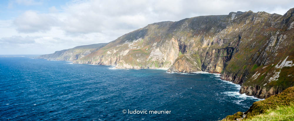 Ce matin, je continue ma traversée du comté de Donégal jusqu'à Teelin ou pendant 5 km, une route étroite et sinueuse me conduit au parking de Bunglass Point, un point de vue sur les 600 mètres de falaises abruptes de Slieve League. Vous pouvez vous rendre au sommet de la falaise en empruntant le One Man’s Pass, petit sentier qui arpente les falaises jusqu’à leur point culminant. Attention, si le vent souffle fort, c'est souvent le cas, à ne pas trop approcher du bord, ça décoiffe !